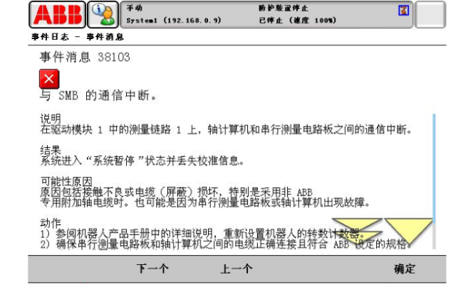 ABB機器人維修報警代碼38103(與SMB的通信中斷)